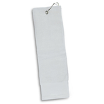 Double folded 340gsm cotton golf towel, complete with an eyelet and clip for easy attachment to golf bags and carts.